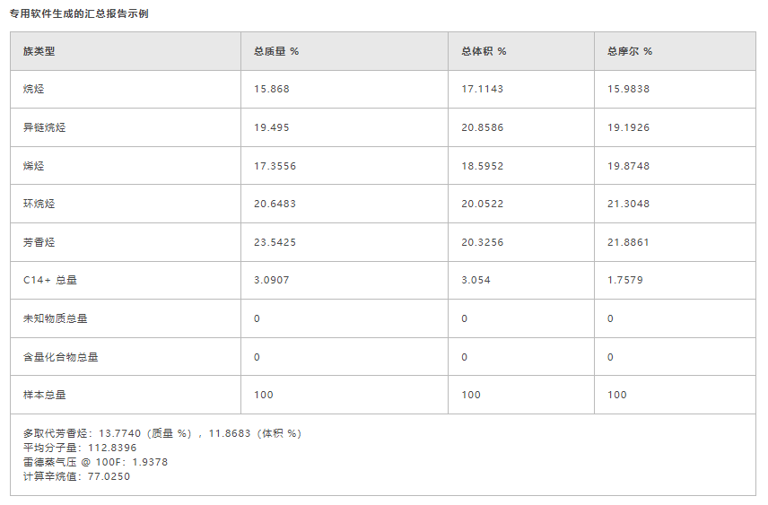 按照ASTM D 6730 标准的要求分析烃类(DHA),可测定汽油中烃类(PONA:烷烃、烯烃、环烷烃和芳香烃)组成和汽油燃料中的氧化物(甲醇、乙醇、甲基叔丁基醚、乙基叔丁基醚和甲基叔戊基醚)组成。通过将保留指数与正构烷烃进行匹配来完成 PONA的分析鉴定。但是,PONA色谱图上有很多个峰,很难全部确定。保留时间的准确度和重复性得不到保证,会导致结果的误差。GC2010 Plus 采用先进的流量控制器,保证高度准确的流量控制,能够轻松简便地对烃类进行分析和鉴定。岛津提供符合以下方法要求的单体烃分析:ASTM D 5134、ASTM D 6729、ASTM D 6730 及 ASTM D 6733。